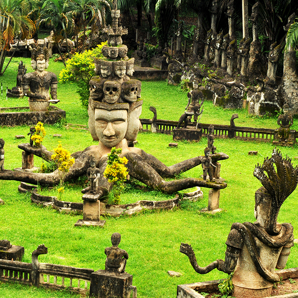 Unsere Wahl: Nehmen Vientiane als Mittelpunkte für Ausflüge in die umliegenden Präfekturen, einschließlich des Buddha-Parks von Xieng Khoang und der Ebene der Gläser, für Bootsfahrten und Flusskreuzfahrten im Mekong oder für zwei Tage in Vang Vieng.